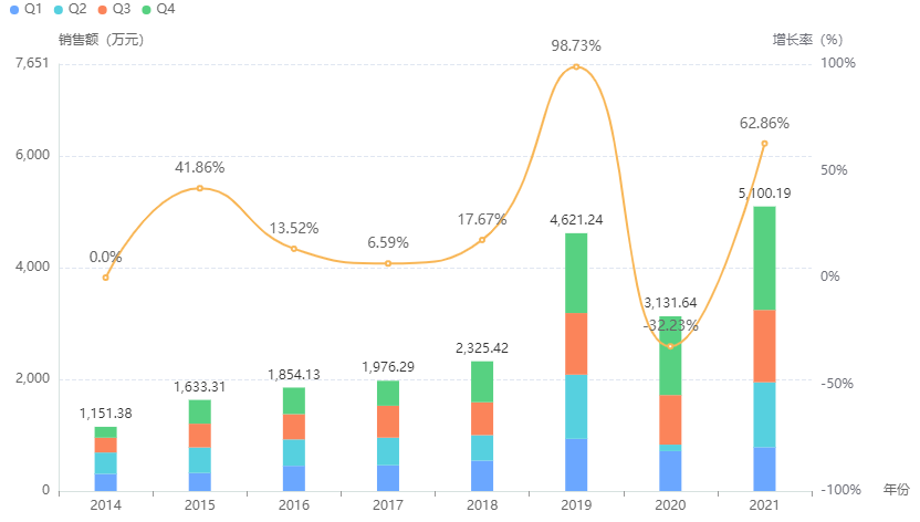 氨甲环酸作为一款经典止血药,已有胶囊剂、片剂、注射剂等多种剂型陆续获批上市,在使用的批文数量超110个。据药融云统计,氨甲环酸2021年院内销售额突破10亿元,其中氨甲环酸注射液为主力品种,占据78%的市场份额,院内销售额超8亿元,同比增长44%。