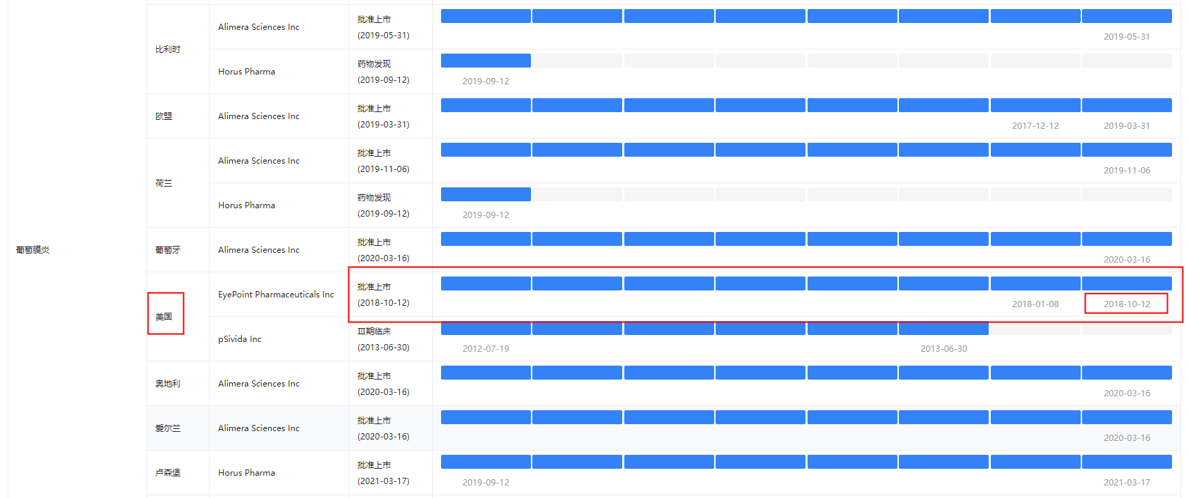OT-401氟轻松葡萄膜炎适应症部分国家研发情况(完整请登录药融云官网查看)