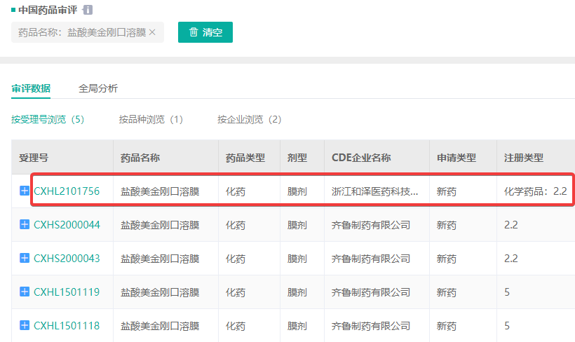 截图来源:药融云中国药品审评数据库