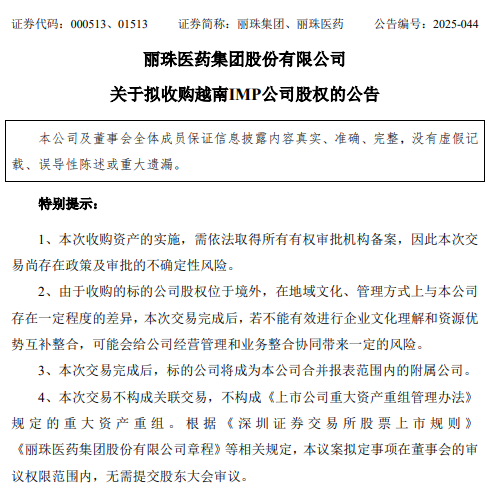 丽珠集团称,本次收购为集团进一步拓展海外市场奠定坚实基础,支持其在医药领域国际化及可持续发展的长期战略。