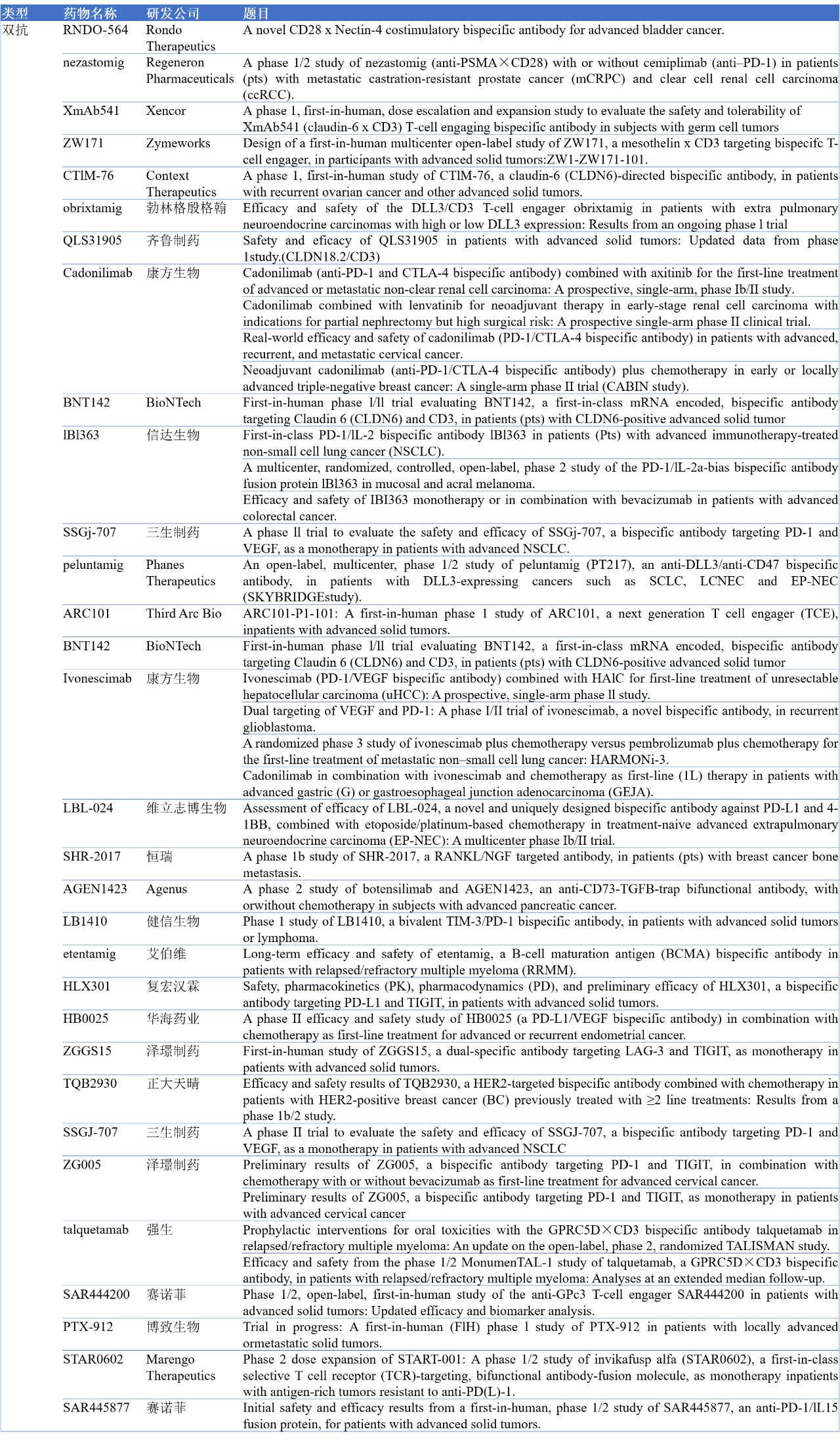 附表:2025年ASCO上的双抗、三抗、多抗、双抗ADC等创新型药物一览表