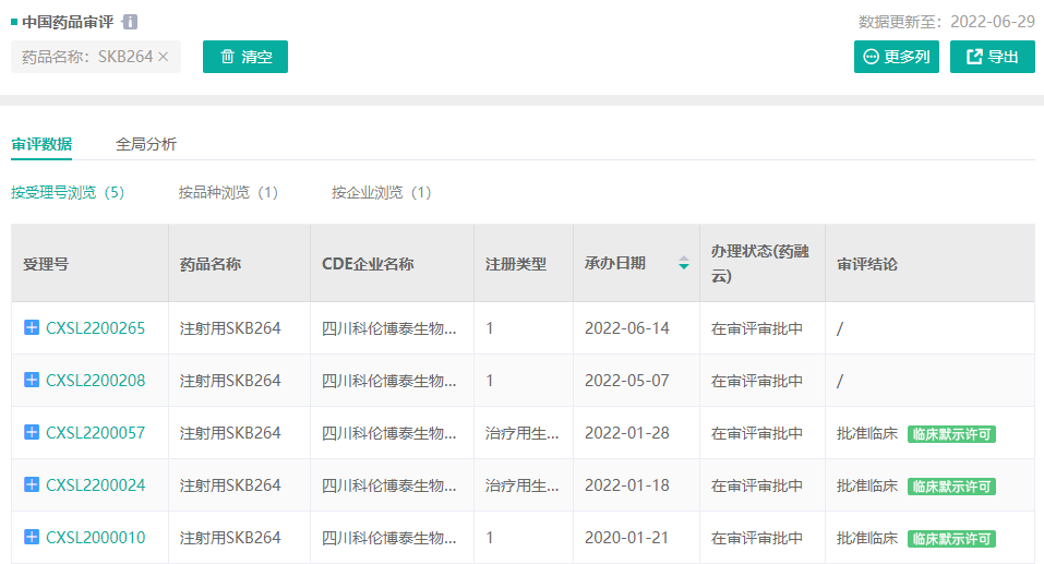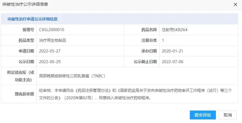 注射用SKB264审评情况