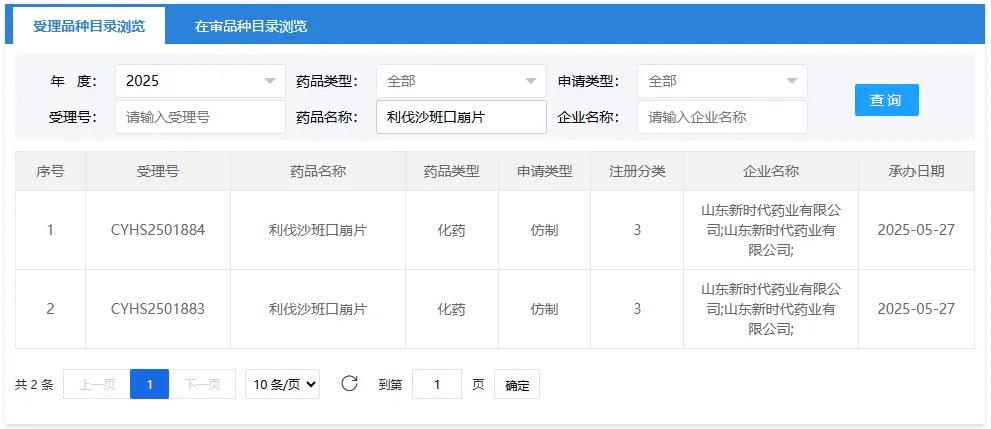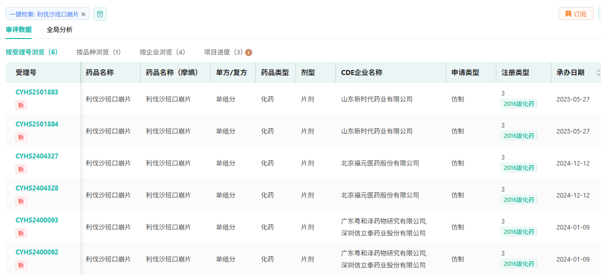 5月27日,据CDE官网显示,山东新时代提交的3类仿制化药利伐沙班口崩片上市申请已获受理。若成功获批,或将成为国产首仿。