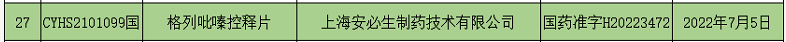 NMPA发布2022年07月06日药品批准证明文件待领取信息,其中,上海安必生制药技术有限公司的格列吡嗪控释片获批,视同过评该2型糖尿病亿元高难度品种,为国内第三家过评企业。