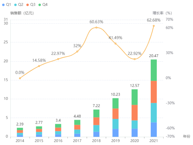 酮咯酸氨丁三醇注射液为我国国家医保品种(乙类),限手术后疼痛或严重急性疼痛的短期治疗。据药融云统计,2021年咯酸氨丁三醇注射液单品院内销售额超20亿元,同比增长62.7%,创下销售额新高,其中,成都倍特和山东新时代药业平分秋色,各占据了酮咯酸氨丁三醇注射液超4成的市场份额。