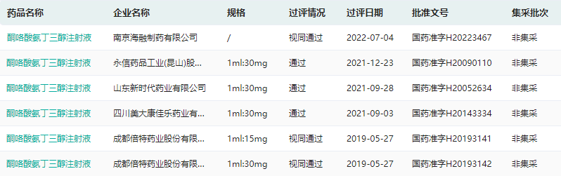 酮咯酸氨丁三醇注射液已过评企业