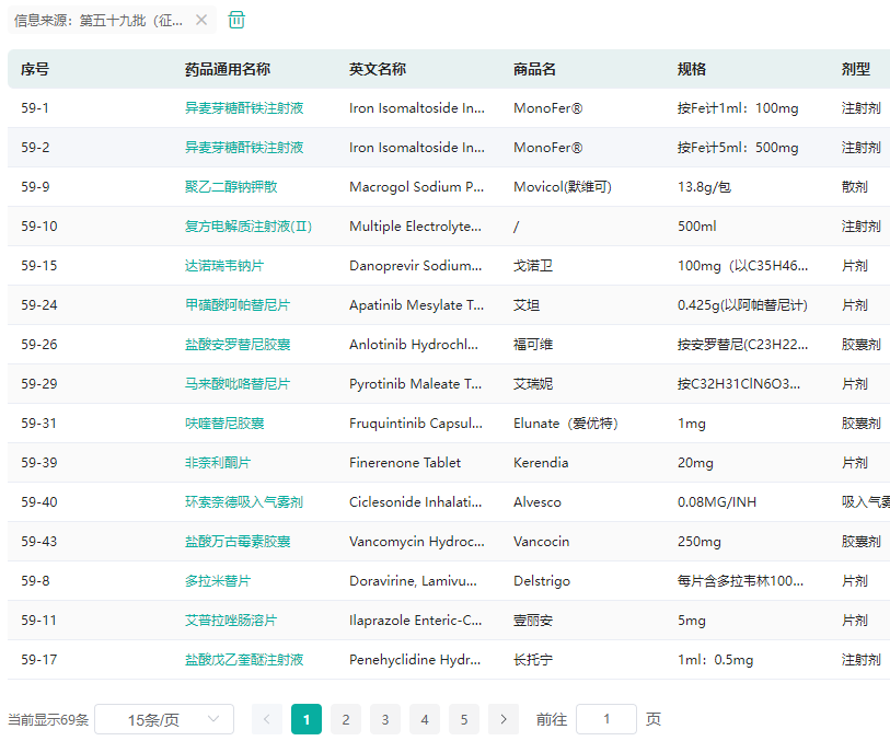 第59批仿制药参比制剂(征求意见稿)数据