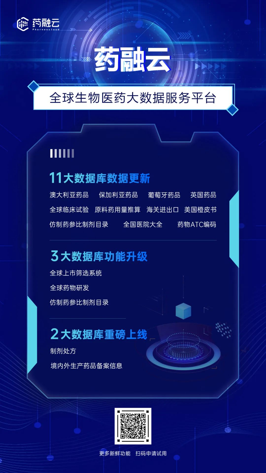 药融云医药数据库是生物医药行业权威数据库之一,是全国首家集全球生物医药全产业链数据为一体的大数据服务平台。与此同时,药融云团队也在不断对数据库进行打磨升级。