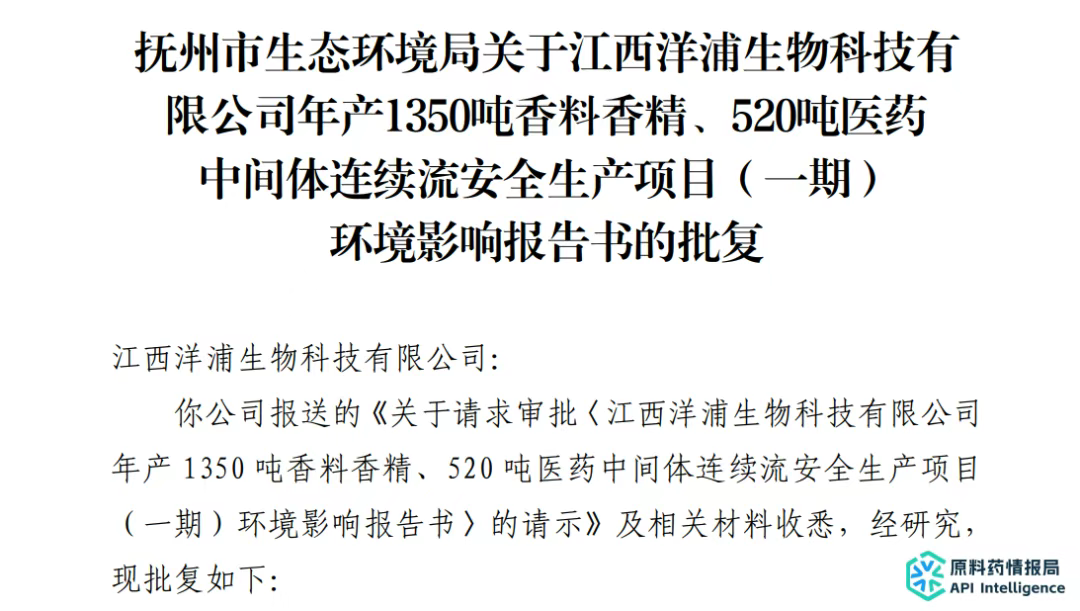 近日,关于江西洋浦生物科技有限公司年产1350吨香料香精、520吨医药中间体连续流安全生产项目在相关网站批复公示。
