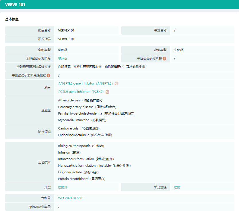 2022年7月12日,Verve Therapeutics宣布,其用于治疗杂合子家族性高胆固醇血症(HeFH)的碱基编辑药物——VERVE-101,已经完成首例受试者给药(临床试验heart-1),这也是首个体内碱基编辑的临床试验。
