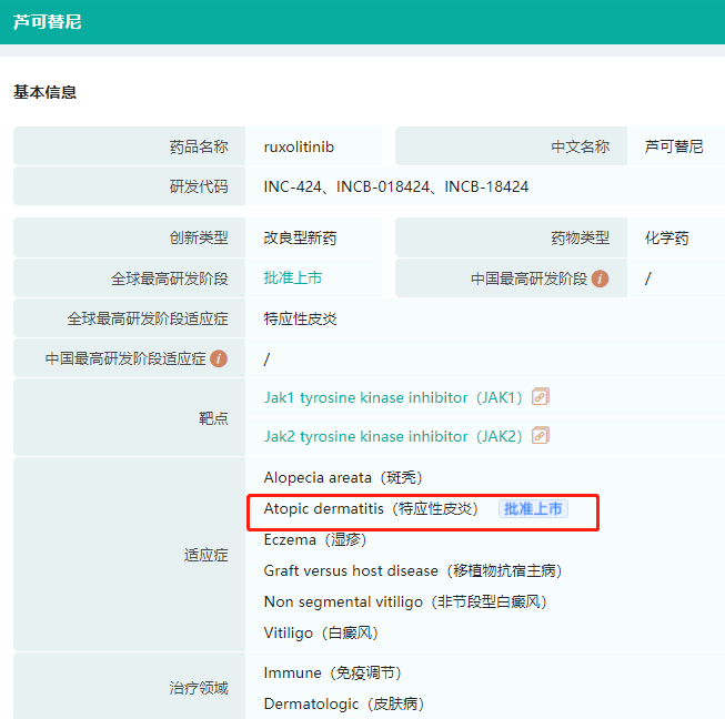 此外,Incyte还开发了芦可替尼乳膏剂,其用于治疗特应性皮炎的适应症也已获得了FDA批准,商品名为Opzelura。尚未在国内上市。