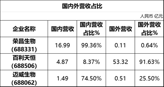 *和荣昌生物完全相反的是百利天恒,其国外营收占比91.63%,主要由于百利天恒与BMS就BL-B01D1达成的合作协议首付款到账及相关知识产权收入确认,导致营业收入较上年同期大幅增长,因该交易涉及海外权益,境外收入实现结构性新增。