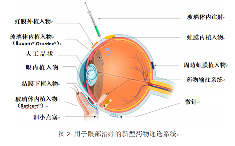 眼部结构复杂,其独特的解剖和生理屏障给治疗带来了一定的机遇和挑战,眼前段疾病的局部滴眼剂由于受泪液清除、角膜屏障影响,导致生物利用度低、患者依从性差;眼后段疾病的玻璃体内注射治疗方式属于有创操作,存在视网膜脱离、眼内炎症等风险。