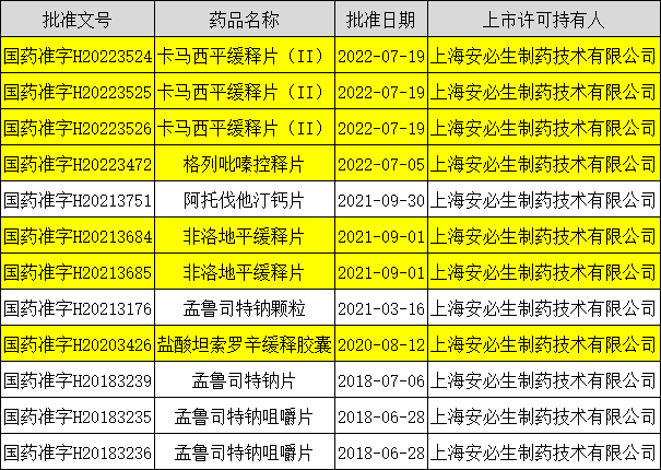自2020年8月,盐酸坦索罗辛缓释胶囊获批,不到2年时间,上海安必生制药技术有限公司已经有4个产品,7品规的缓控释制剂获批上市!研发实力强劲!
