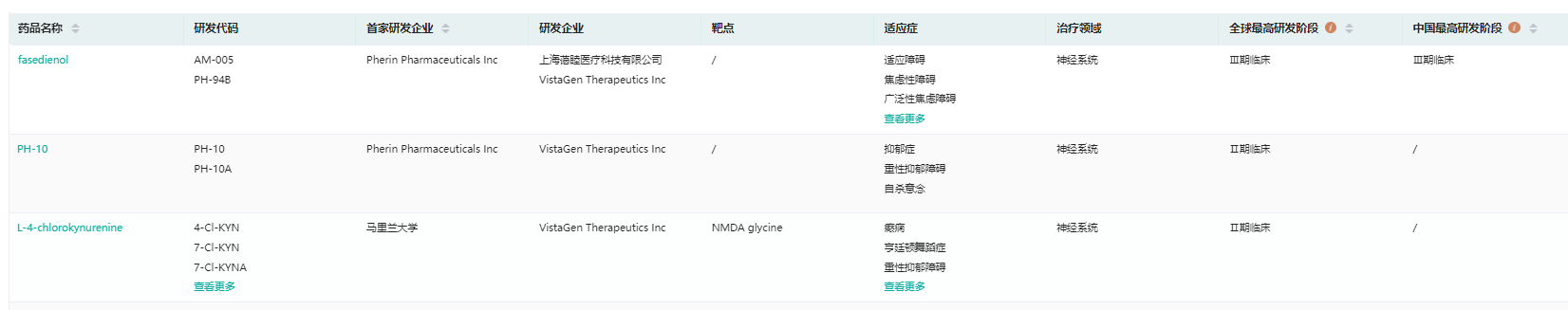 经药融云数据库显示,VistaGen专注神经系统药物研发,研发管线上除了PH94B,还有2款临床二期产品在研。其中 PH10是另一种用于治疗与抑郁症相关的疾病的鼻喷雾候选药物。去年3月,PH10在一项临床前研究中表明其作用机制不直接涉及GABA-A受体,从而将其与苯二氮卓类药物区分开来。