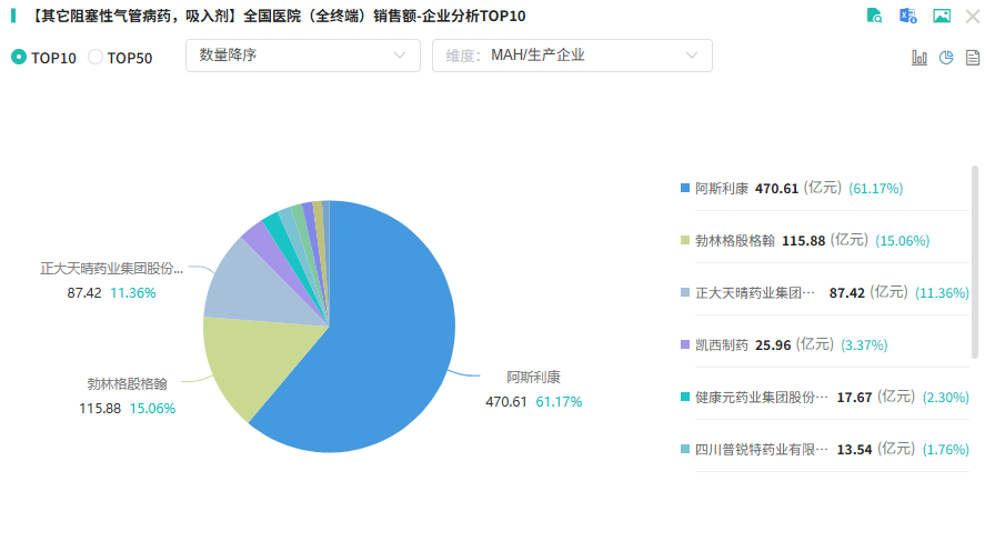 根据摩熵医药数据显示,当前我国阻塞性气管病的吸入剂用药在全国医院(全终端)的销售额超800亿元。