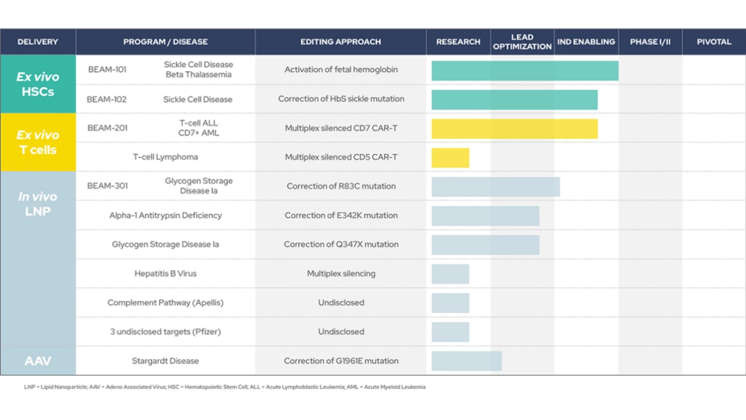 Beam Therapeutics研发管线