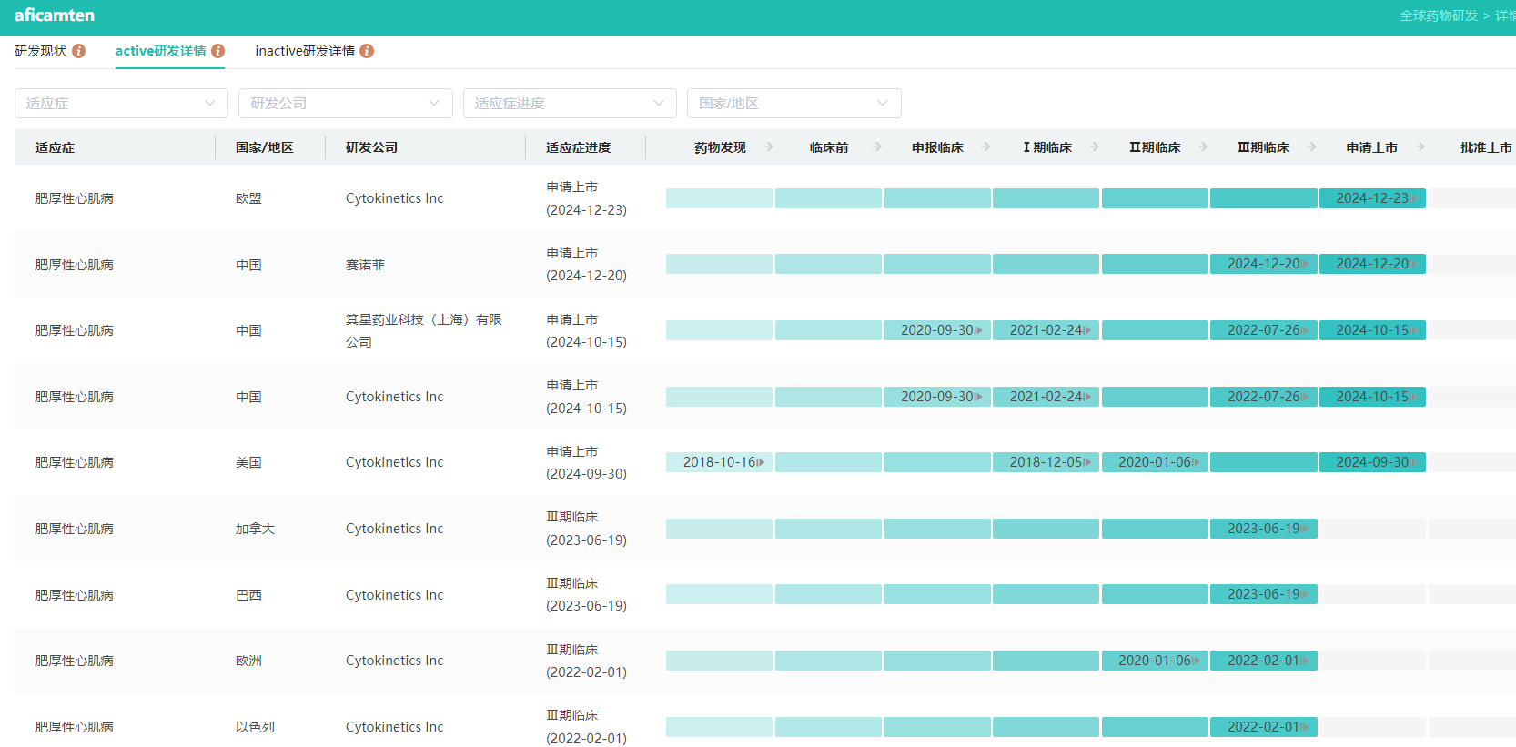 Aficamten全球最新研发状态