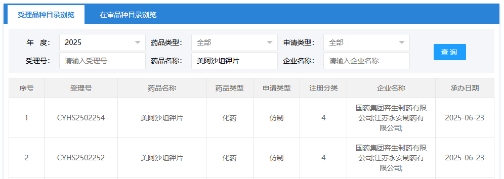 截图来源:摩熵医药中国药品审评数据库
