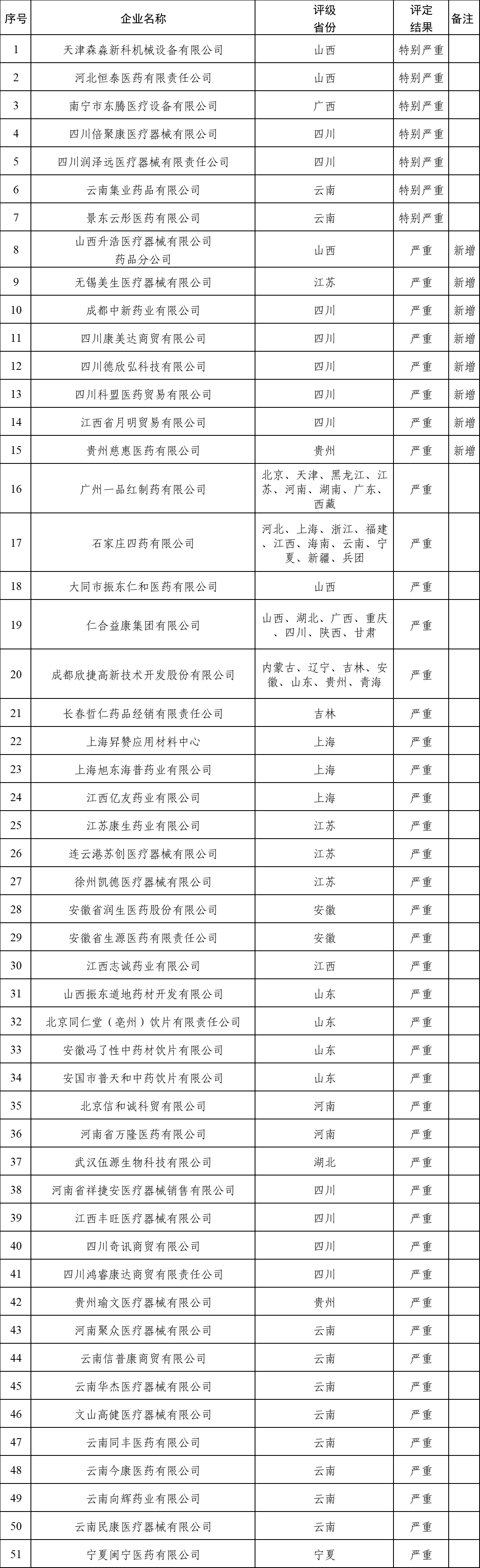 受国家医疗保障局委托,国家医疗保障局医药价格和招标采购指导中心汇总了截至2025年3月31日各省份评级为“特别严重”和“严重”失信的医药企业情况,现公告如下。