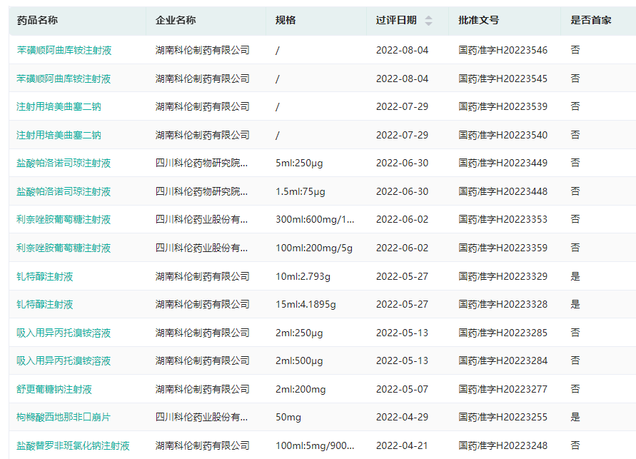 科伦药业2022年新注册分类上市品种