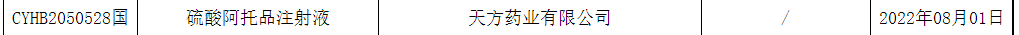 据NMPA官网,近日天方药业的硫酸阿托品注射液通过仿制药一致性评价,据药融云查询,这是第2家过评该2亿临床常用抗胆碱药品种的企业,首家为天津金耀药业。