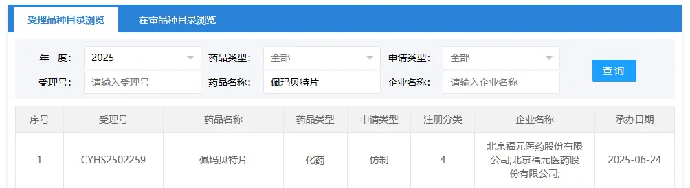 国内其他药企同样看好佩玛贝特片。原研刚上市不久,仿制药便已“群狼环伺”!福元医药、正大天晴、倍特药业、湖南科伦、广州大光制药等共7家企业提交了仿制药上市申请。