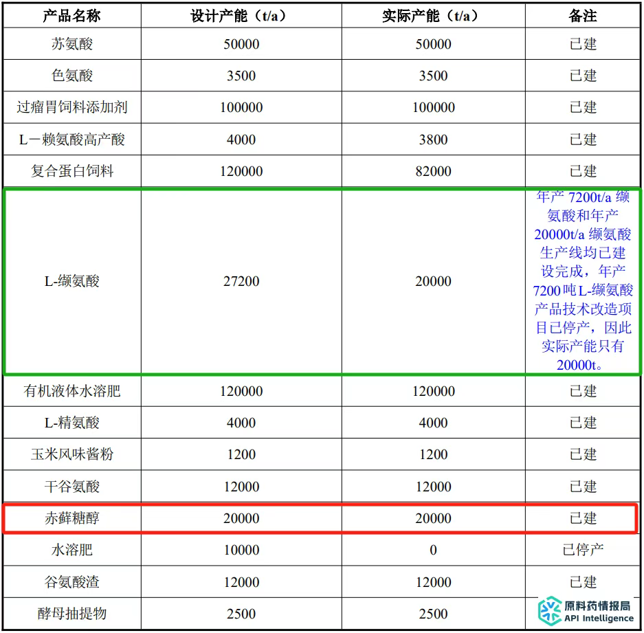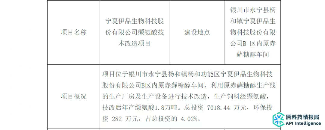 备注:技改后L-缬氨酸产能达4.6万吨/年。根据此前宁夏伊品生物科技股份有限公司精氨酸技术改造项目,项目技改后年产精氨酸1.2万吨。