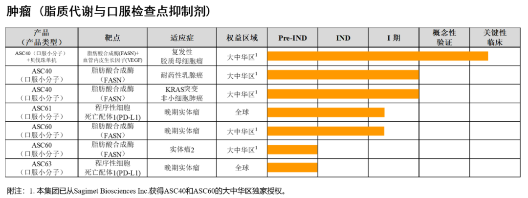 歌礼制药有关肿瘤的研发管线及进展如图所示: