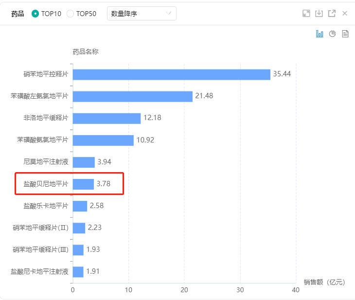 盐酸贝尼地平片院内销售额