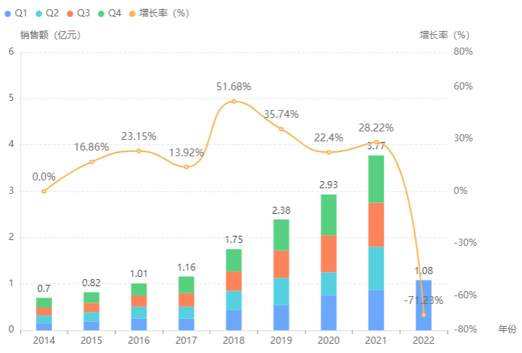 2003 年 1 月,国内盐酸贝尼地平原料和片剂由华夏药业集团有限公司上市,2018 年技术转让至山东华素,目前国内仅协和麒麟和山东华素在生产销售该品种,两者市场表现平分秋色。据药融云统计,盐酸贝尼地平片院内销售额一直在稳定增长,2021年达3.78亿元,为当年钙通道阻滞剂院内销售额的TOP6品种;今年第一季度院内销售额已过亿,同比增长25%,年内有望突破4亿元大关。
