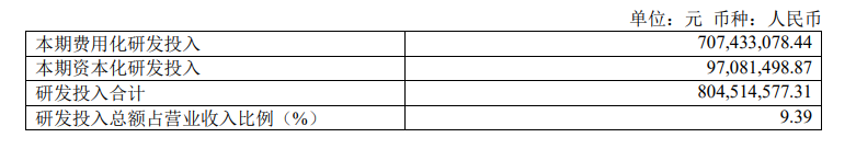 报告期内,健康元药业研发投入总额为 80,451.46 万元,较上年同比增长 15.39%,占营业收入总额 9.39%。报告期内本公司研发投入主要用于新产品研发和项目技术升级改造等,基于生物药、吸入制 剂等多个项目进入临床阶段,研发投入较上年同期有所上升。