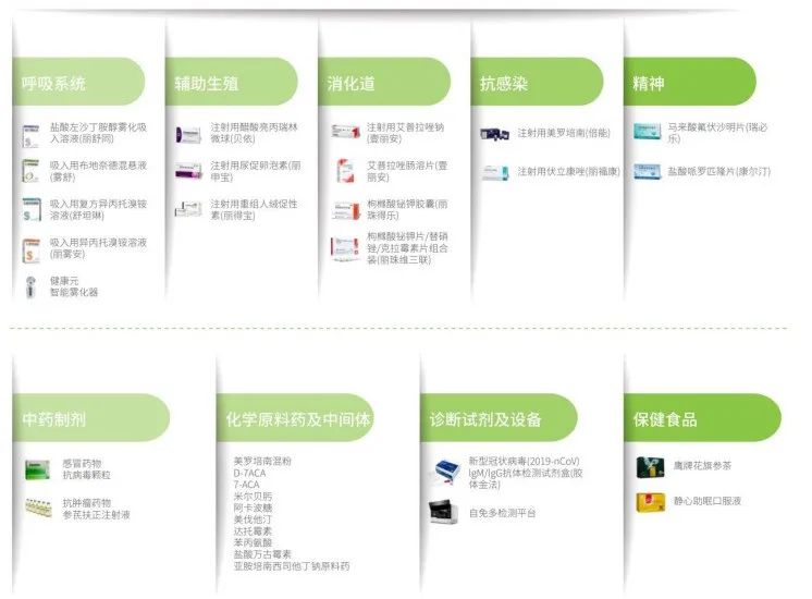 健康元药业主要从事医药产品及保健食品研发、生产及销售,所处行业为医药制造业。公司业务范围涵盖化学制剂、中药制剂、化学原料药及中间体、诊断试剂及设备、保健食品等多重领域。丰富的产品矩阵及品类为公司获取了更多的市场机会及发展空间。健康元药业公司主要代表产品如下: