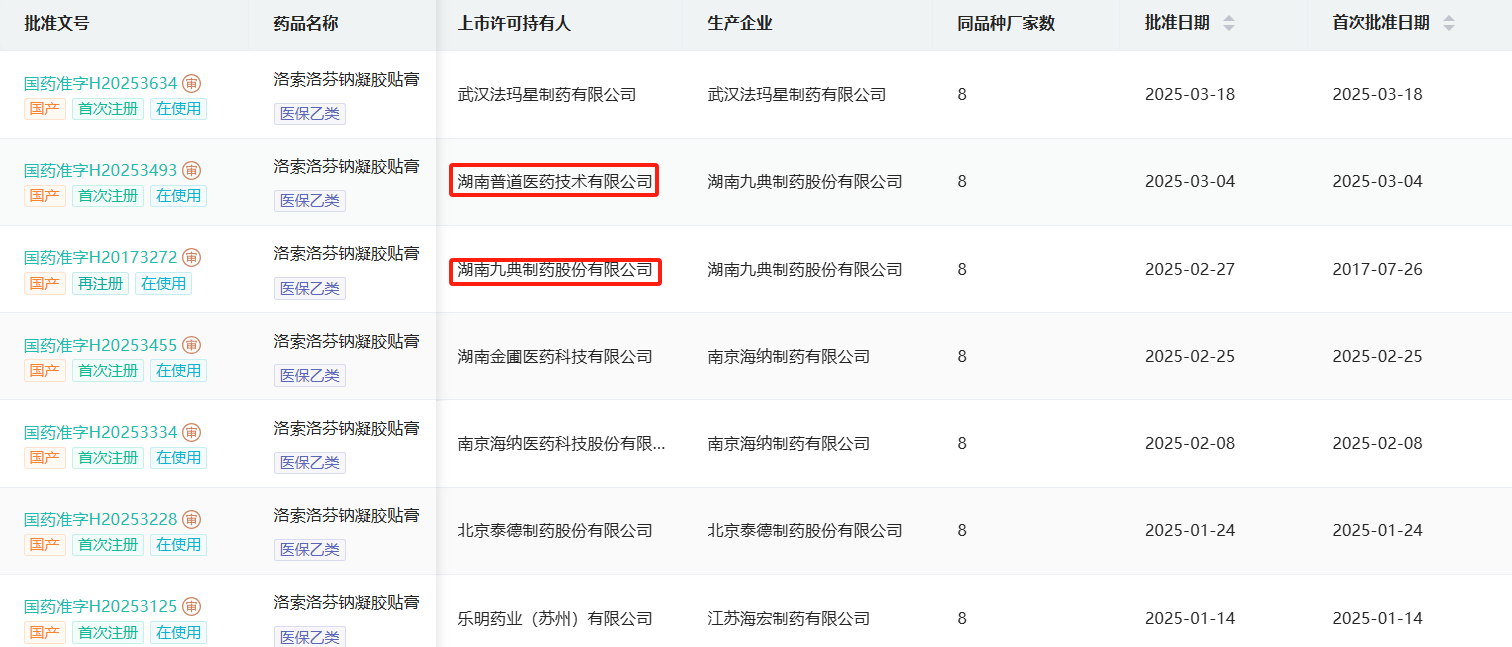 如果九典这家B证企业稍晚一点跟进,洛索洛芬钠凝胶贴膏或许还能再撑一批。