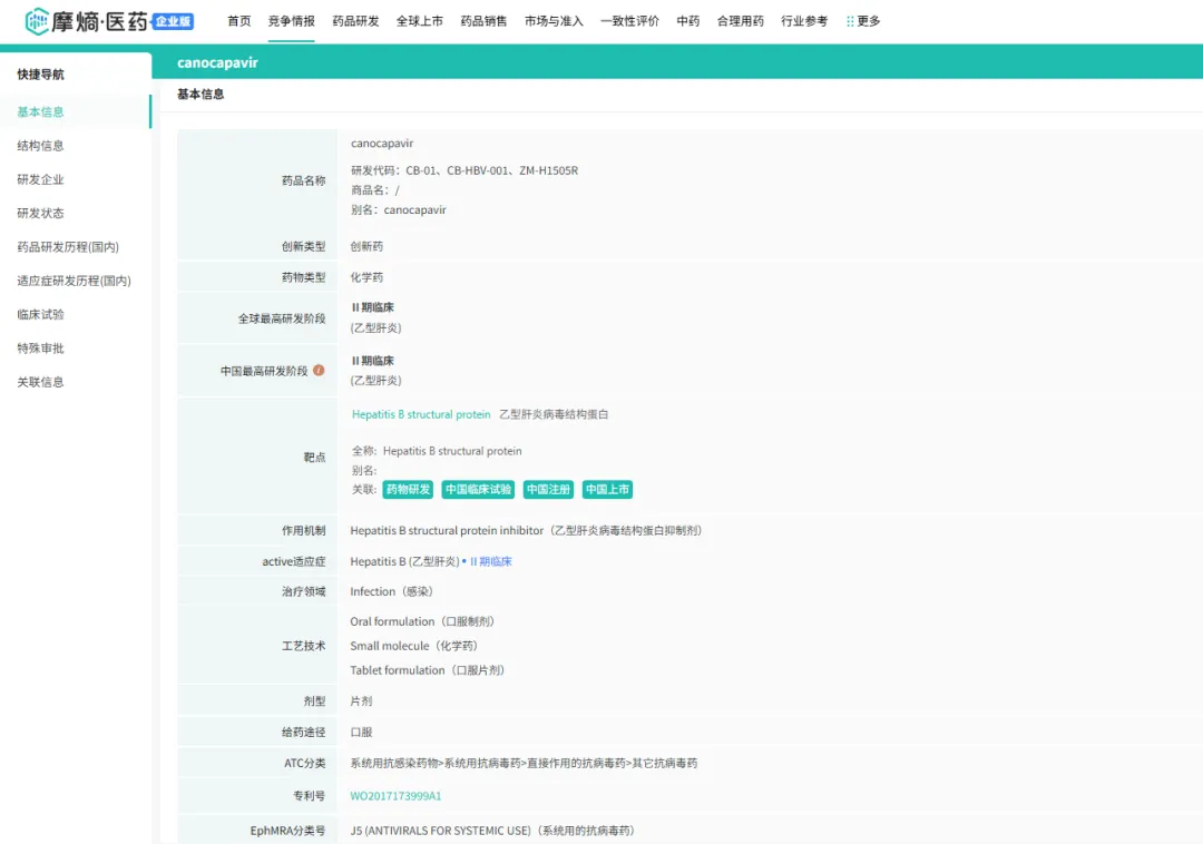 截图来源:摩熵医药-全球药物研发数据库