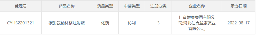 碳酸氢钠林格注射液仿制药申报情况