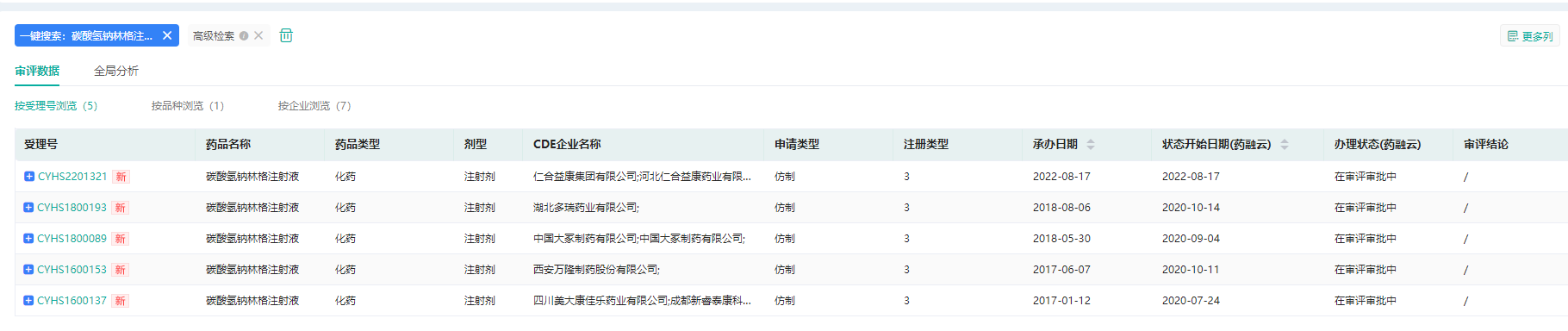 截图来源:药融云中国药品审评数据库