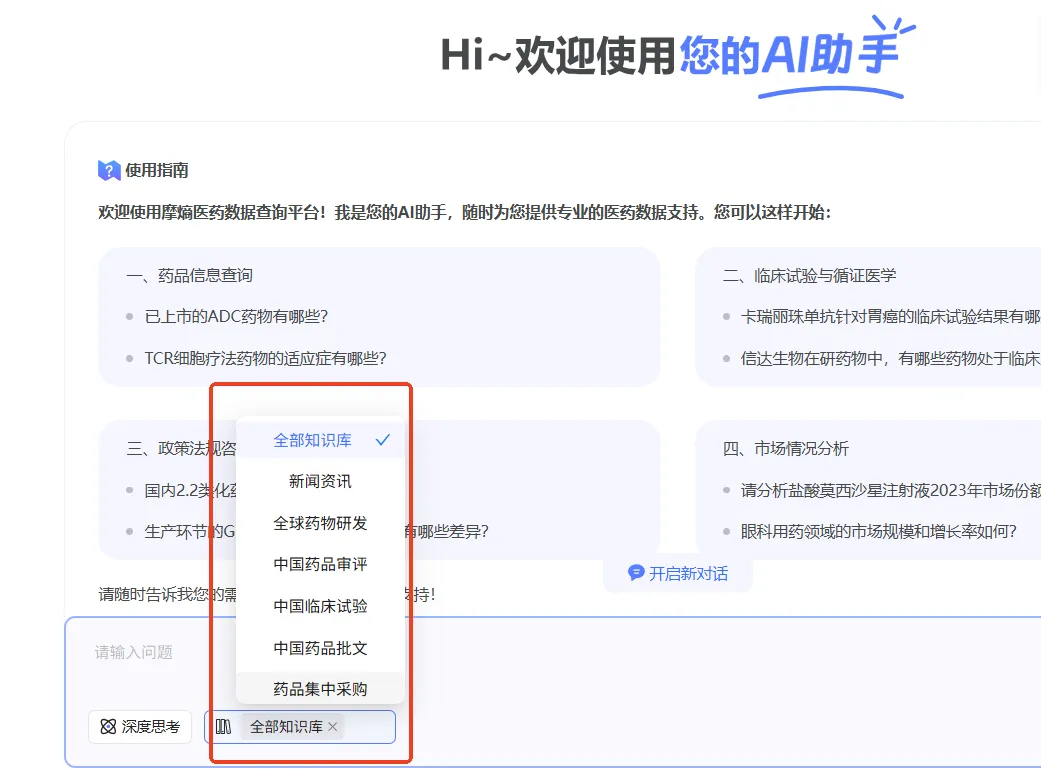 功能优化——本次数据库更新对市场与准入、中药数据库群下的医药投融资、中药饮片炮制规范数据库,还有药理毒理专版数据库的数据检索、分析与展示等功能进行了升级优化。同时,数据库AI助手全新上线「本地知识库AI问答」功能。