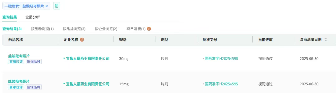 6月30日,国家药监局(NMPA)官网显示,宜昌人福药业有限责任公司按注册3类申报的盐酸羟考酮片获批上市,为该剂型首仿+首家过评。