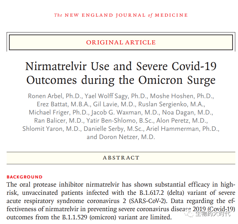 自从2021年12月美国FDA发布了对辉瑞制药Paxlovid的紧急使用授权后,该药品得到了大量的推广和使用,但近期受到了接二连三的疑问。先是服用Paxlovid转阴后复阳,接着是EPIC-SR的II/III期临床研究失败。而近日,一项新观察性研究发现,Paxlovid只对65岁或以上的患者发挥了应有的疗效,而对年轻人群没有证据表明其有益的效果。该研究(DOI:10.1056/NEJMoa2204919)发表于8月24日的新英格兰医学杂志》(New England Journal of Medicine)。
