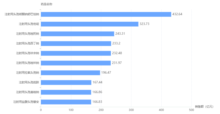 头孢类注射液院内销售TOP10