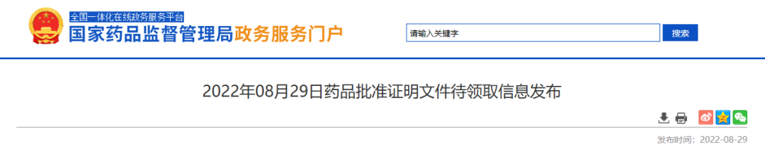 NMPA发布2022年08月29日药品批准证明文件待领取信息,本次共有86个受理号获批,其中, 27个一致性评价受理号获批,包括26品规注射剂,1品规片剂。
