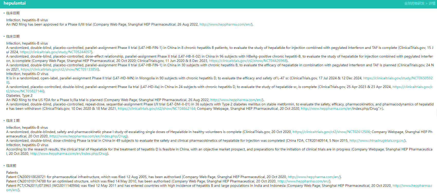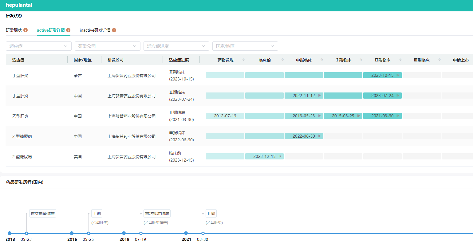 贺普拉肽的全球研发进度