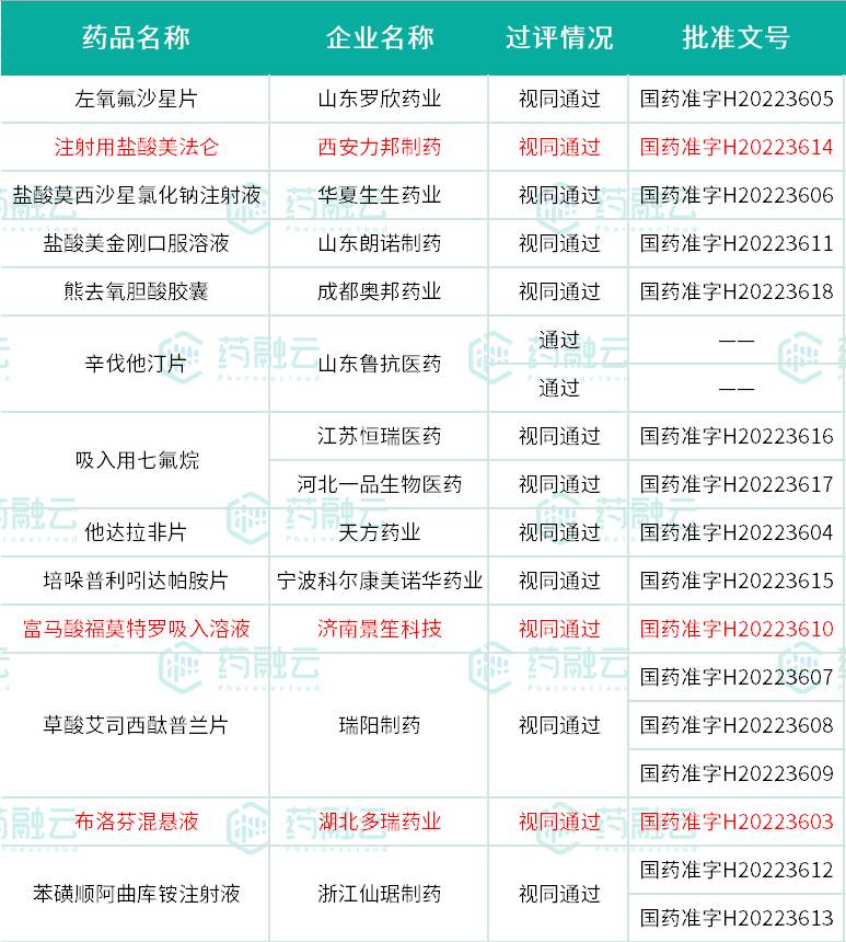 2022.08.30过评药品名单(标红为仿制药首家过评)