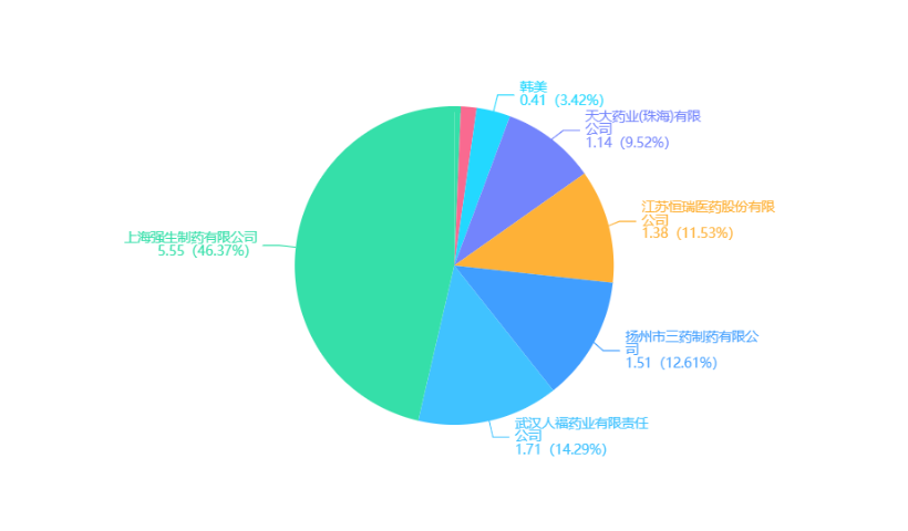 据查询,布洛芬混悬液在国内获批生产的企业有10家,包括上海强生制药、北京韩美制药、武汉人福医药、江苏恒瑞医药等,还有此次湖北多瑞药业过评,斩获了布洛芬混悬液的仿制药首家。其中,近半成的院内市场由上海强生制药占去,其次是武汉人福医药、扬州市三药制药、江苏恒瑞医药、天大药业各占一成左右市场(搜索"药融云小程序"进行相关更多数据查询)。