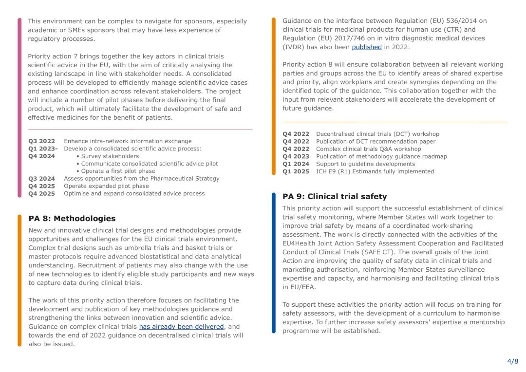 去中心化临床试验:该计划将在2022年底前发布去中心化临床试验,并发布方法路线图,以确定临床试验方法的关键进展并确定其优先顺序。