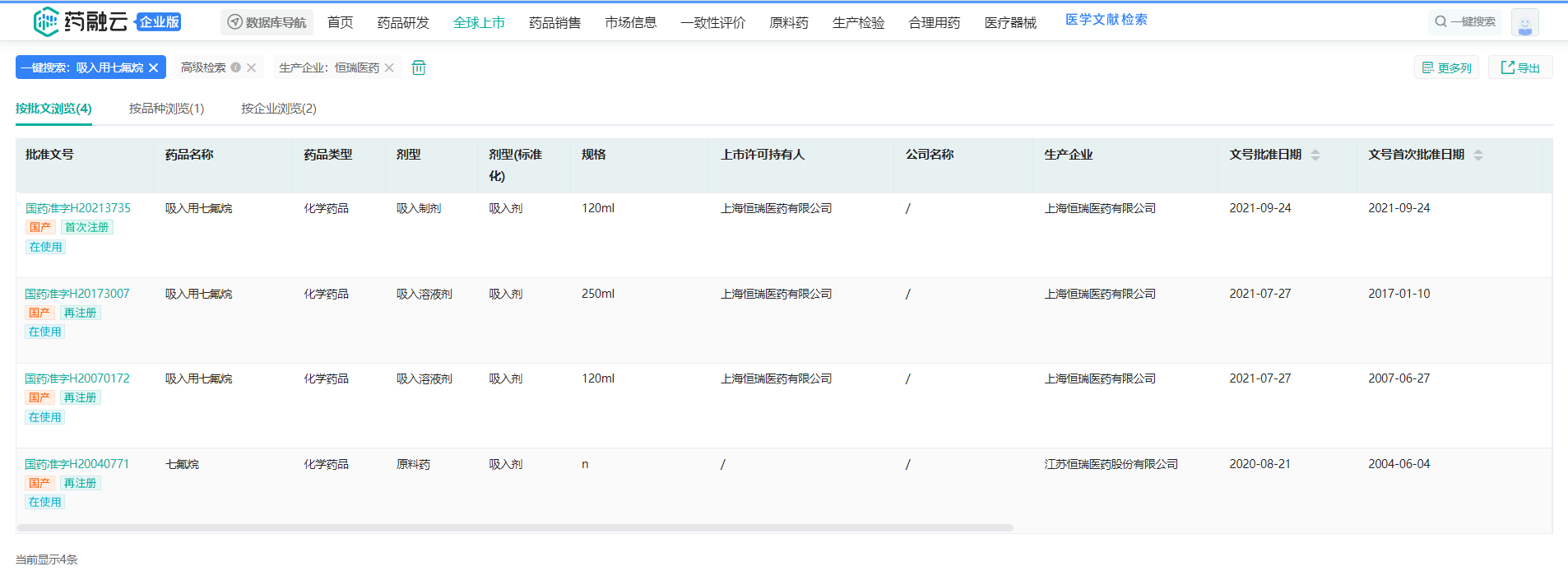 截图来源:药融云中国药品批文数据库