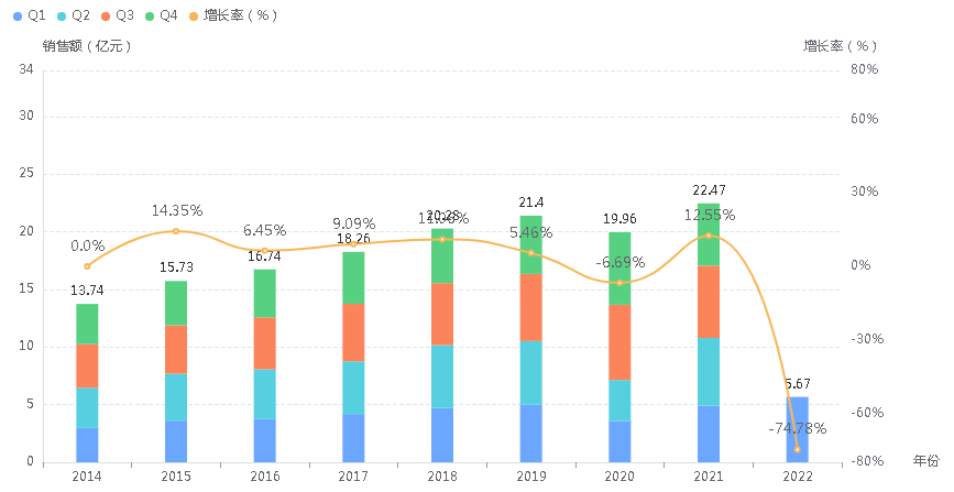 吸入用七氟烷原研来自丸石制药株式会社,以挥发性气体的形式从呼吸道通过进入人体内形成麻醉作用,适用于成年人和儿童的全身麻醉的诱导和维持。目前国内有丸石制药株式会社、上海恒瑞医药、鲁南贝特制药、河北一品制药等多家药企拥有该药品的批文。据药融云数据库显示,近年来吸入用七氟烷的院内销售额均稳定在20亿元左右,2021年超22亿元,其中上海恒瑞医药占据超6成的市场份额。