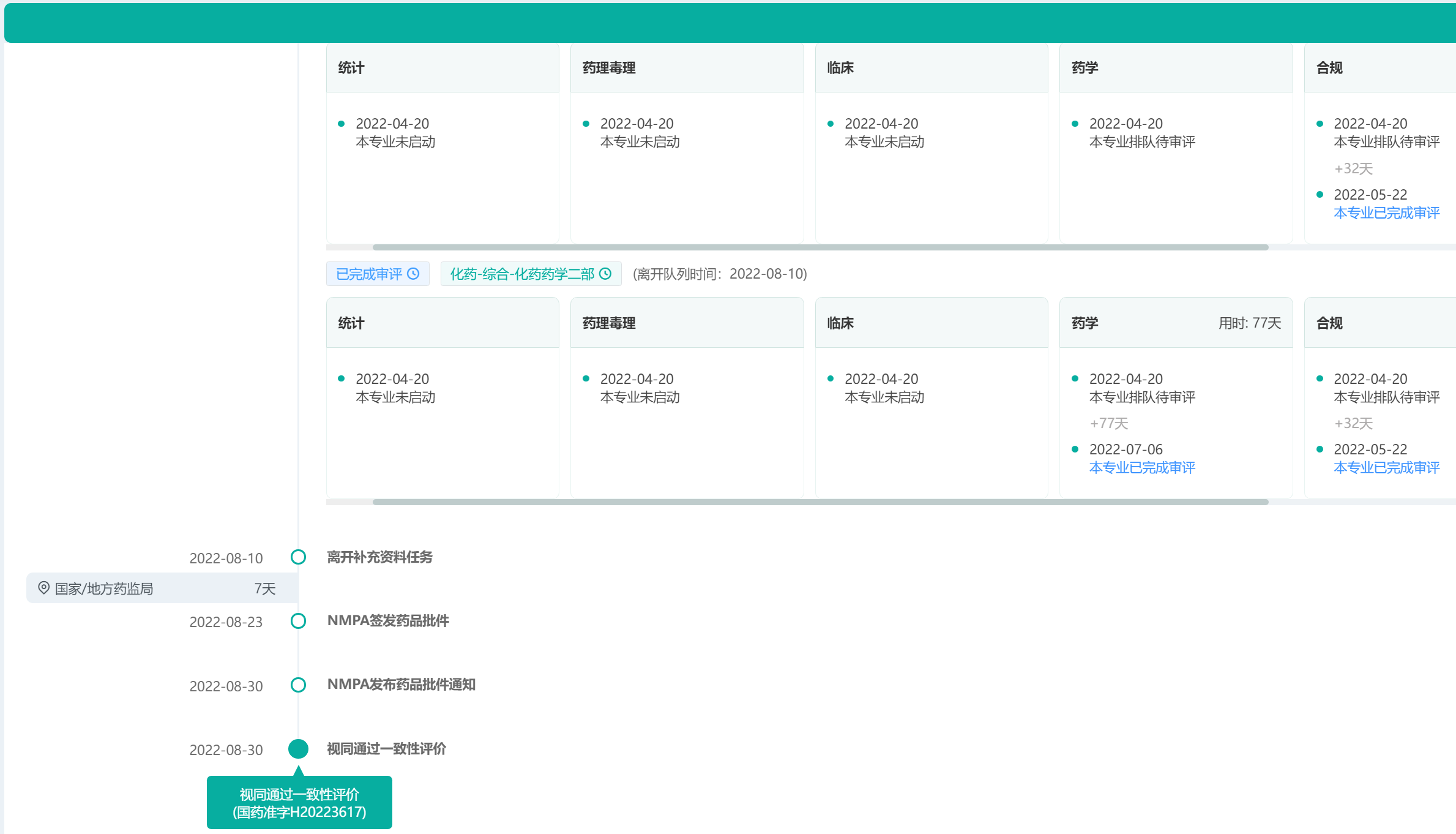 一品制药吸入用七氟烷一致性评价审评时间轴(部分)