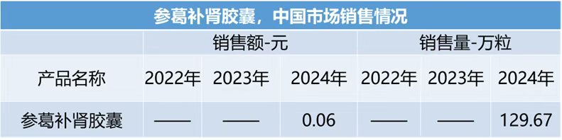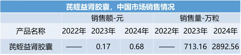 市场表现:2024年院内销售额及销售量分别为600万元,129.67万粒。